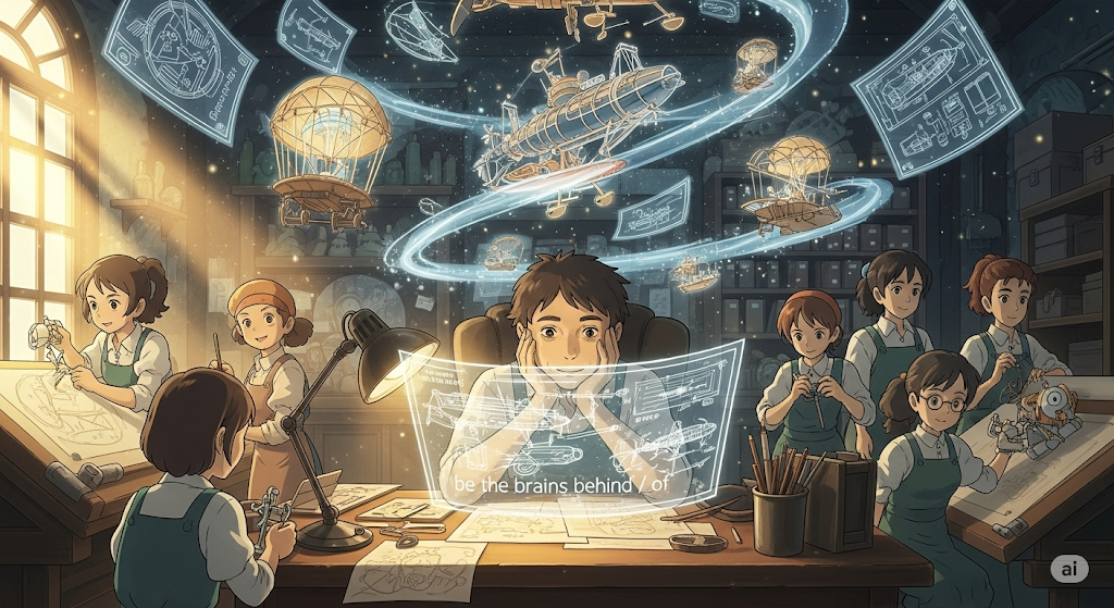 - 예문: She is the brains behind the new marketing strategy.
