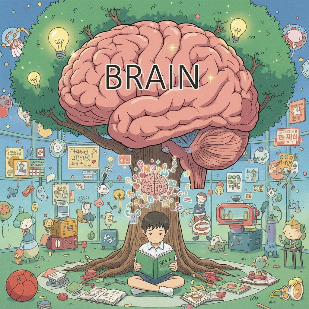 | brain | 두뇌, 아이디어 | 명사로, 지성과 창의성의 원천. | child와 결합하여 두뇌가 낳은 자식처럼 독창성을 강조함. |