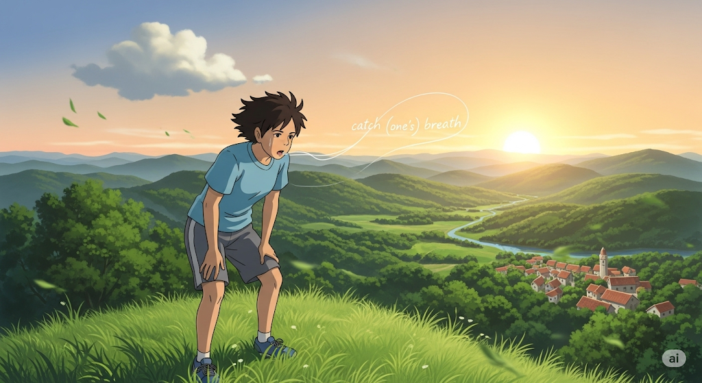 - 예문: After running up the stairs, I stopped to catch my breath.