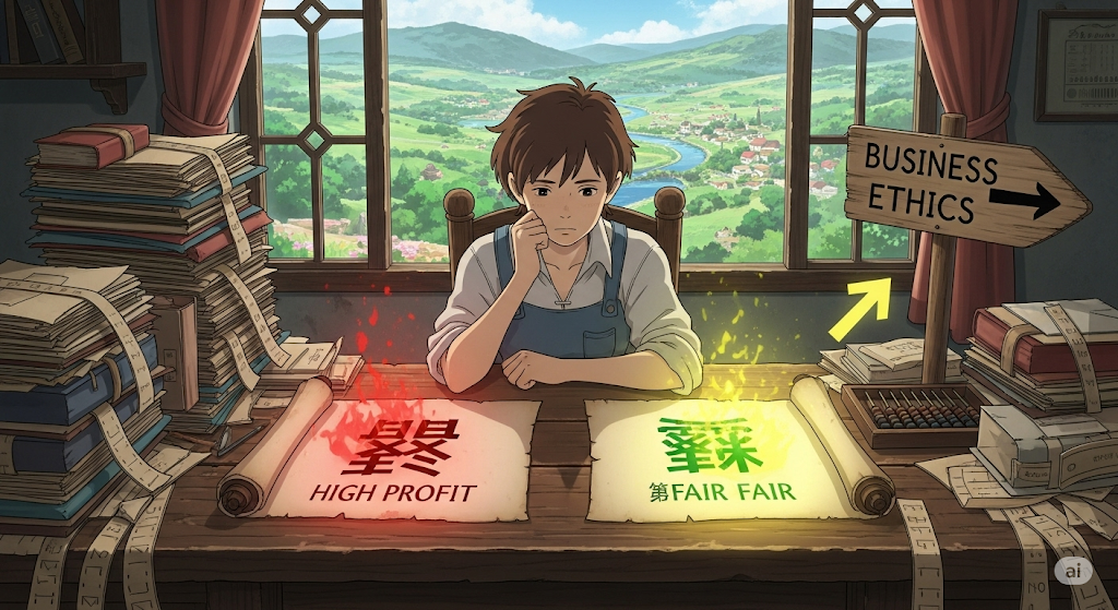 뉘앙스: 사업을 운영할 때 지켜야 할 올바른 도덕적 기준을 의미합니다. 정직하고 공정하게 사업을 하는 것을 강조합니다.