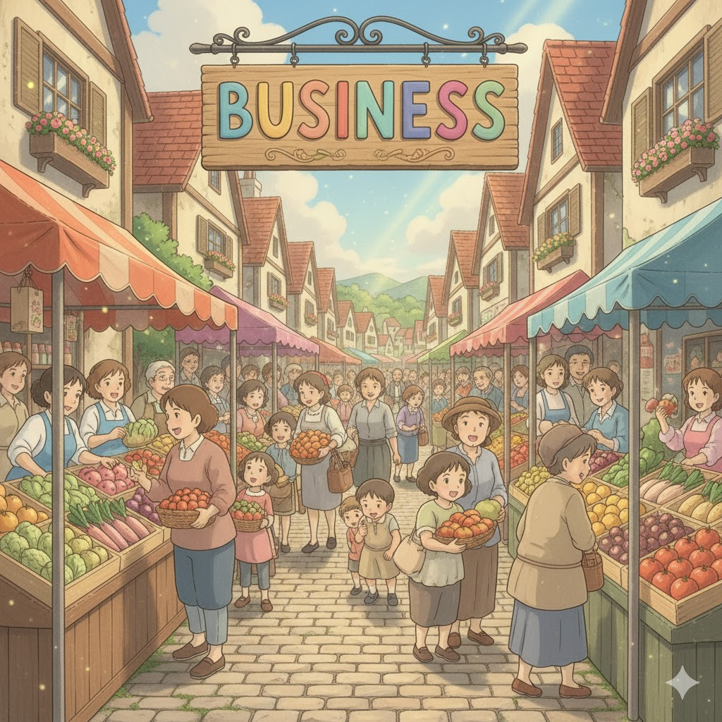 business [ˈbɪznɪs] 경제 활동, 바쁘고 실용적인 느낌