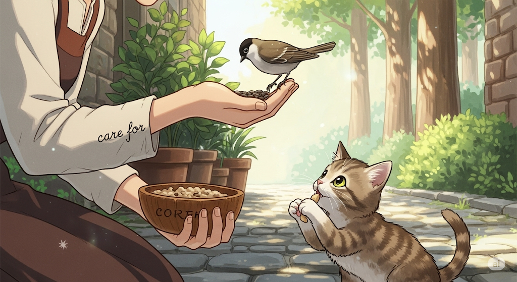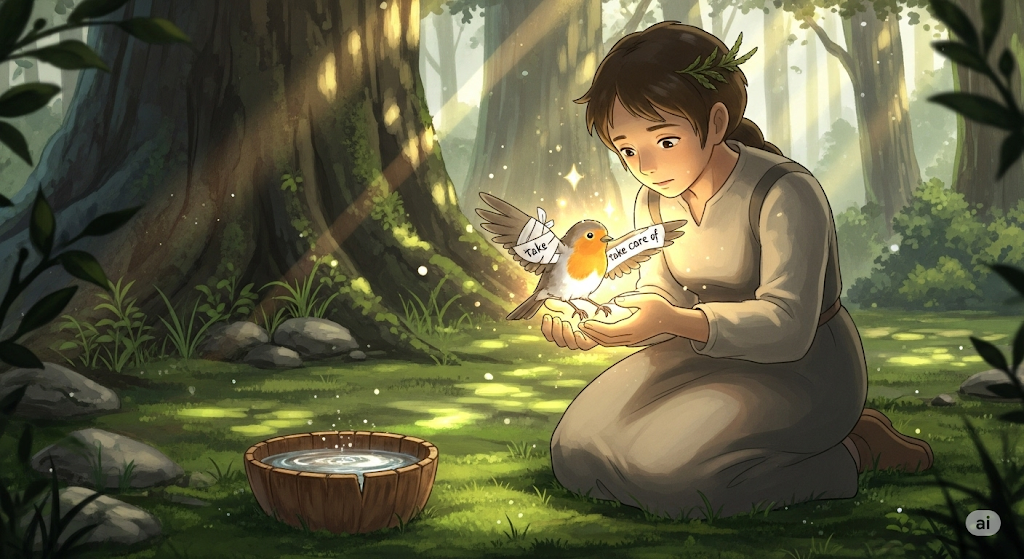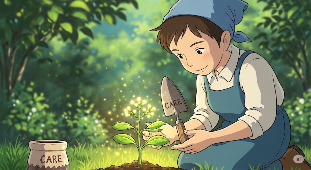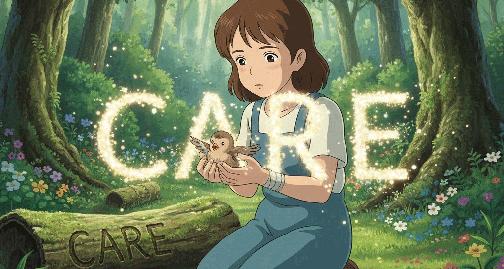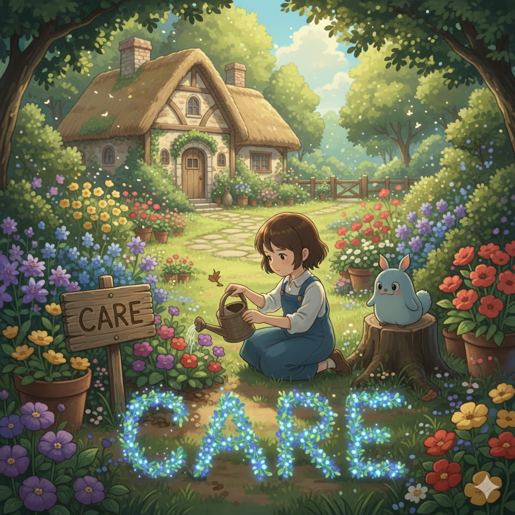- (명사) 돌봄, 보살핌: 누군가나 무언가에게 필요한 것을 제공하고 보호하는 행위.