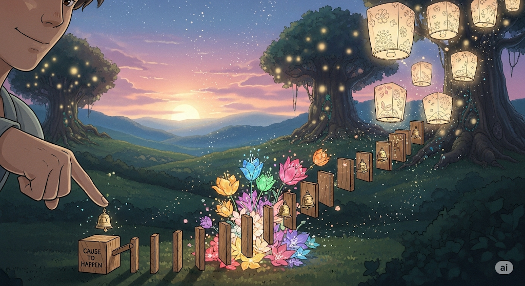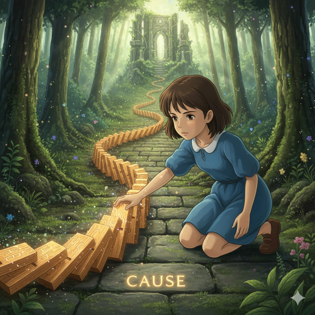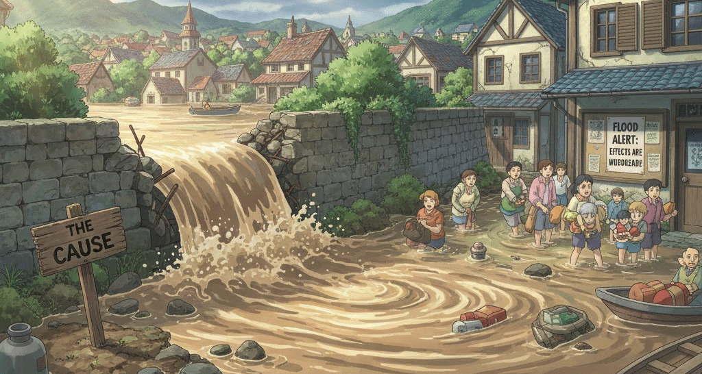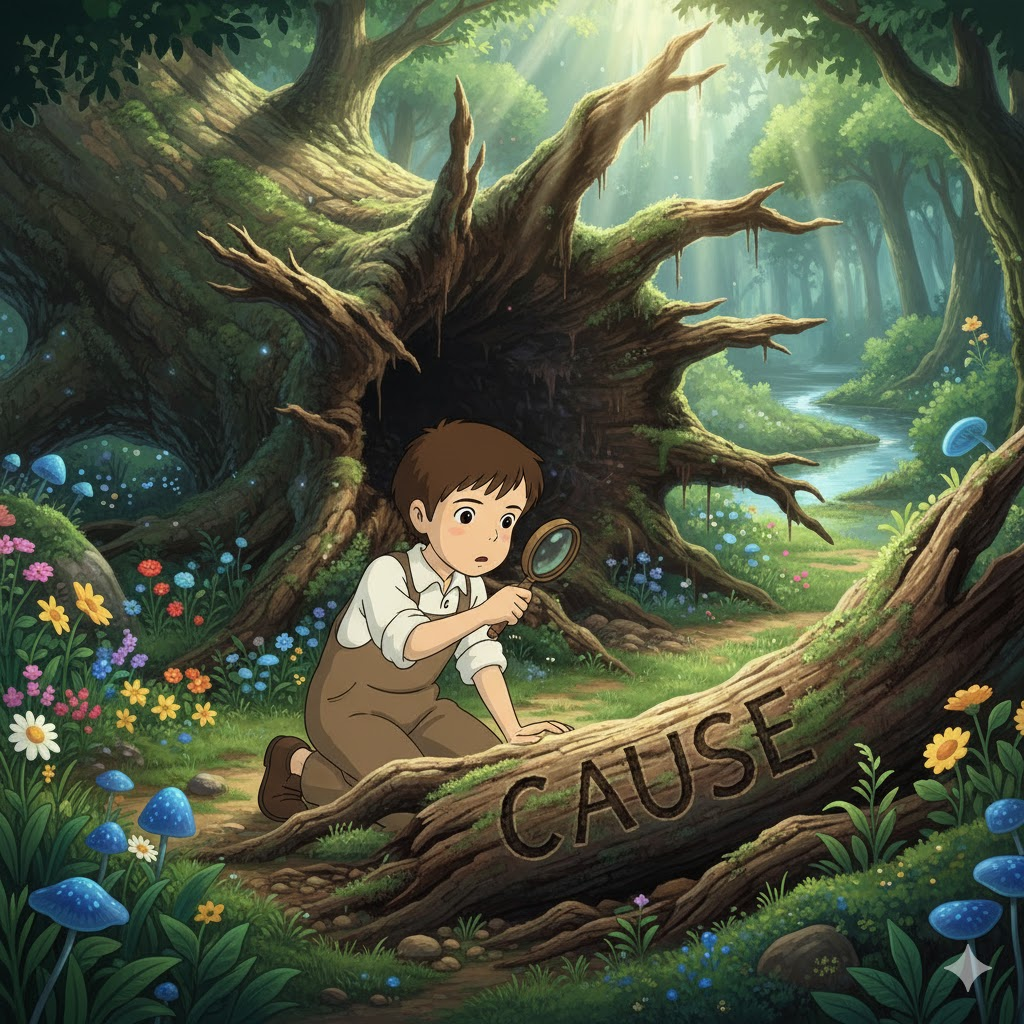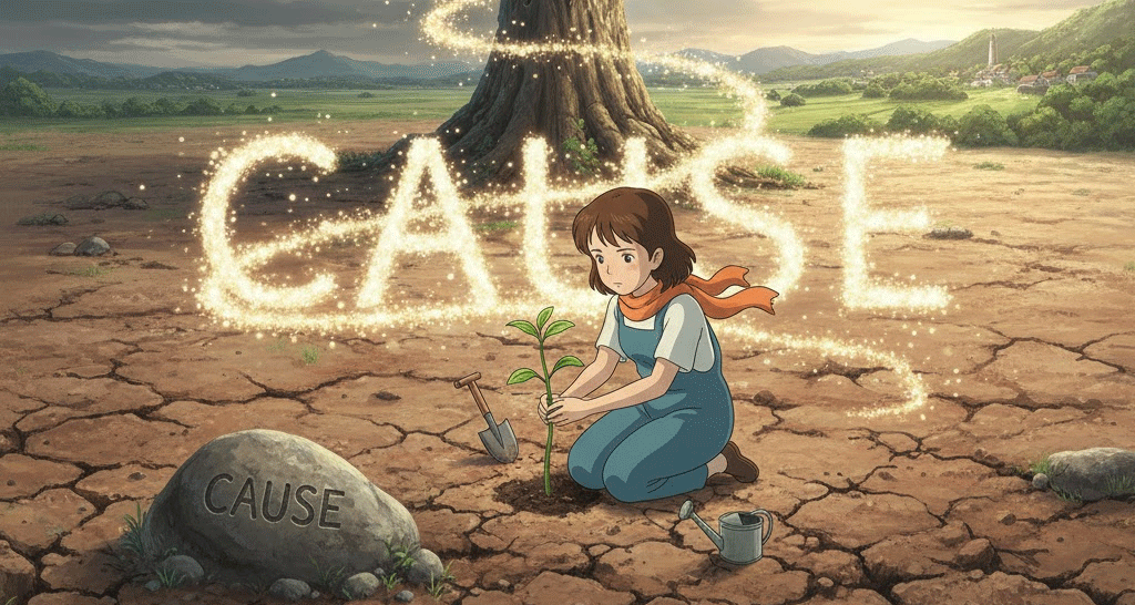 '어떤' '결과'(result), '현상'(phenomenon), 또는 '변화'(change)가 '발생'(happen)하도록 '이끄는'(lead to) '행위'(action), '상태'(condition), 또는 '요인'(factor)을 의미합니다. 단순히 '이유'(reason)를 넘어, '사건'(event)의 '발생'(occurrence)에 '직접적으로'(directly) '영향'(impact)을 미치는 '근원'(origin)을 강조합니다.