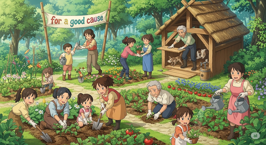 좋은 목적을 위하여, 의미 있는 대의를 위해. 자선, 봉사 등 사회에 긍정적인 영향을 미치는 일을 할 때 사용하는 표현입니다.