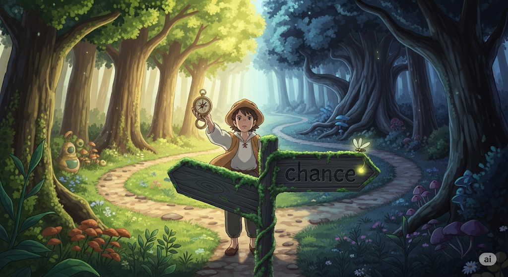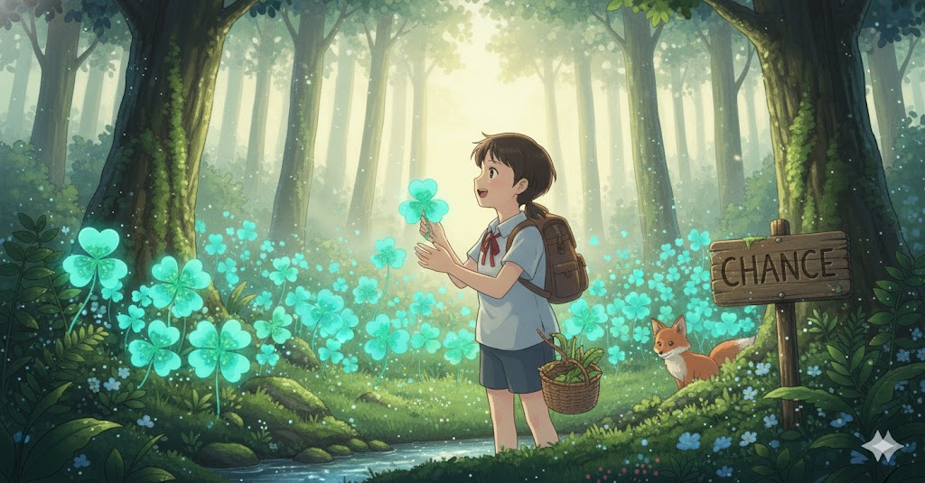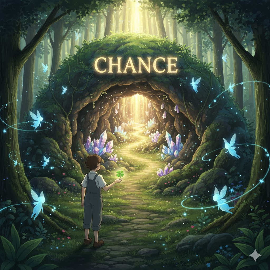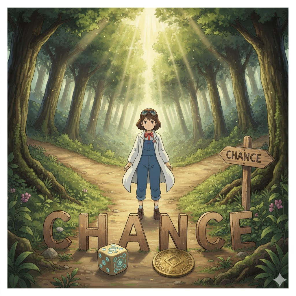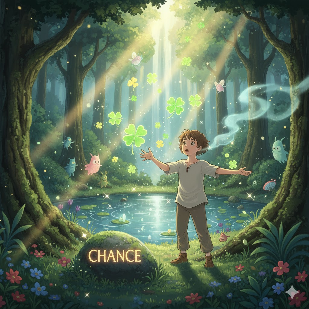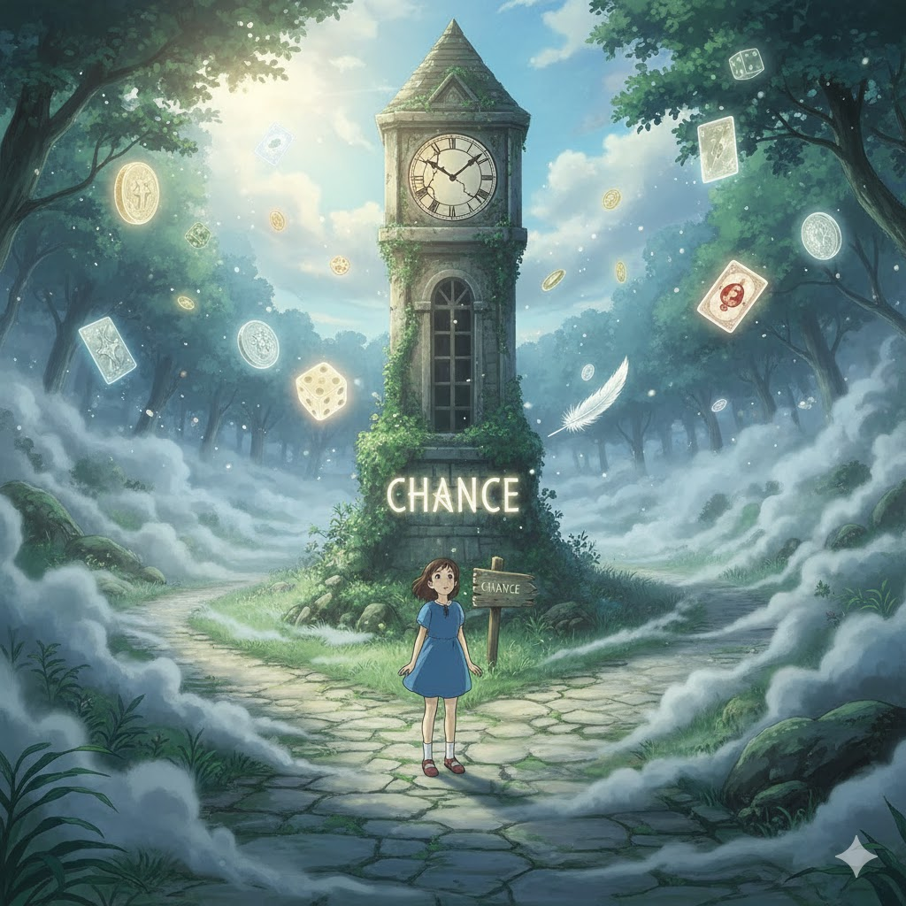 '사건'(event)이나 '결과'(result)가 '의도'(intention)나 '계획'(plan) '없이'(without) '발생'(happen)하는 '불확실성'(uncertainty)의 '정도'(degree)를 의미합니다. 단순히 '확률'(probability)을 넘어, '성공'(success)이나 '이익'(gain)을 '획득'(acquire)할 '수' 있는 '유리한'(favorable) '기회'(opportunity)를 포괄합니다.