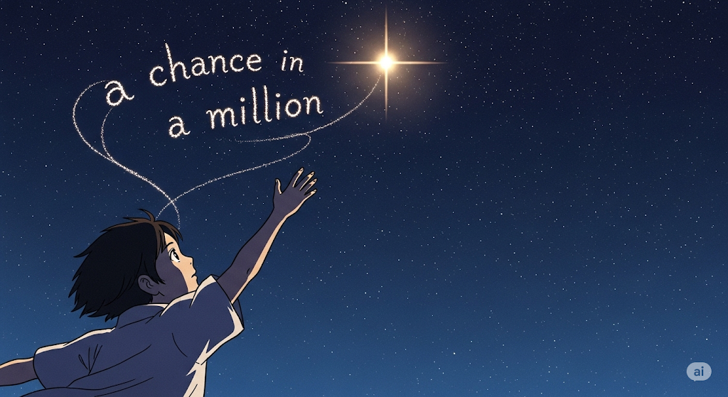 - 예문: He has a chance in a million of winning the lottery. (그가 복권에 당첨될 가능성은 백만 분의 일이다.)