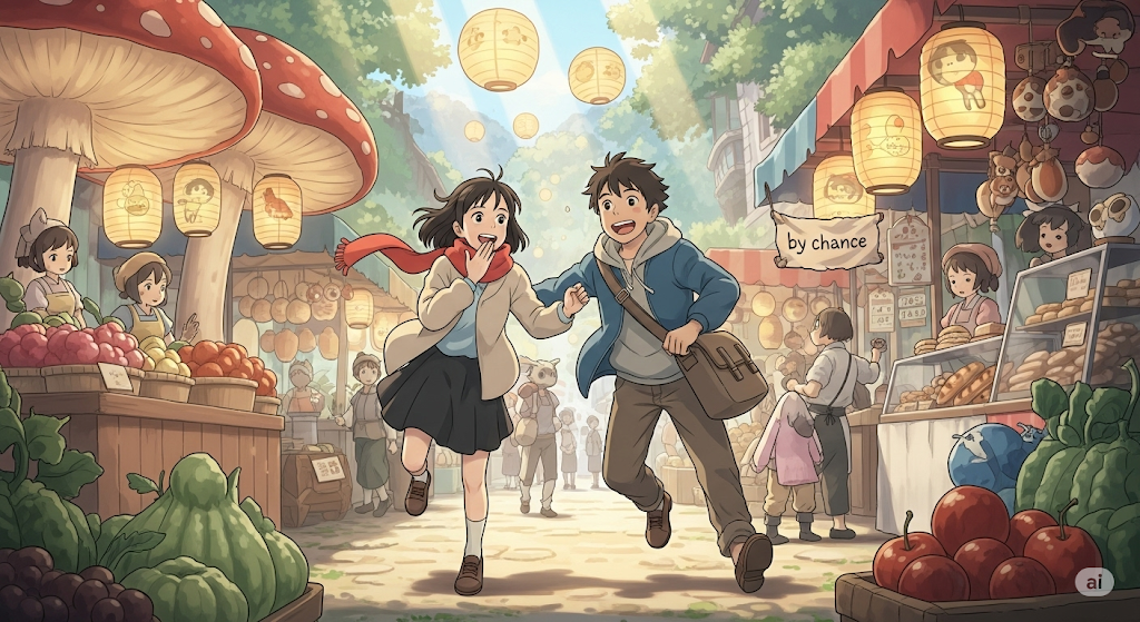 - *'by chance'**는 계획에 없던 일이 우연히 발생했음을 설명할 때 가장 흔하게 사용되는 표현입니다. 만남, 발견 등 의도하지 않은 결과에 대해 이야기할 때 자연스럽게 쓸 수 있습니다.