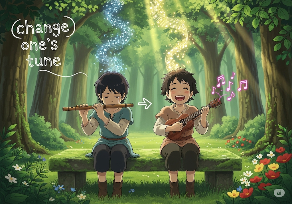 - *'change one's tune'**은 다른 사람의 의견에 동의하거나 상황에 따라 자신의 입장을 바꾸는 것을 비꼬는 뉘앙스로 사용될 때가 많습니다.