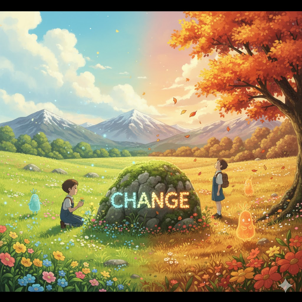 '상태'(condition), '모양'(appearance), '위치'(location), 또는 '속성'(attribute)이 '이전'(former)과 '다르게'(different) '되거나', '만들어지는'(make) 행위를 의미합니다. 단순히 '수정'(modification)하는 것을 넘어, '시간'(time)의 '흐름'(passage)에 따른 '근본적'(fundamental)인 '변화'(transformation)나, '계획'(plan)을 '수정'(adjustment)하는 '결정'(decision)을 포괄합니다.