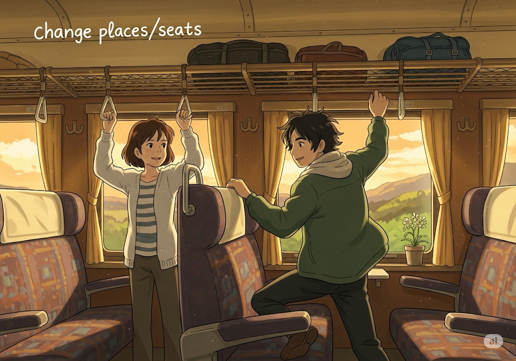 - 예문: Let’s change places so you can see better. (네가 더 잘 볼 수 있게 자리를 바꾸자.)