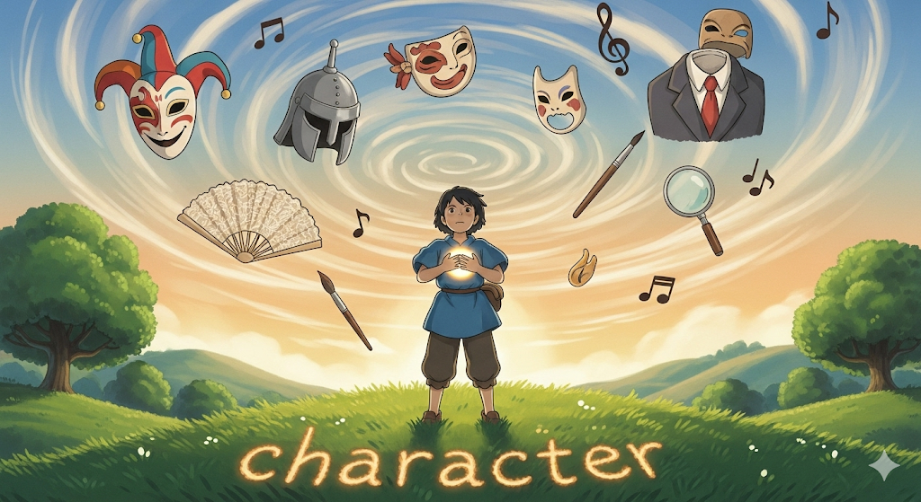 '사람'(person)의 '사고'(thought)와 '행동'(action)을 '결정'(determine)하는 '내면적인'(internal) '정신적'(mental) '특성'(quality)의 '총합'(sum total)을 의미합니다. 단순히 '성격'(personality)을 넘어, '도덕적'(moral) '강점'(strength)이나 '정직함'(integrity)과 같은 '인격'(integrity)적인 '가치'(value)와 '품성'(nature)을 나타내는 데 초점이 맞춰집니다. 또한 '이야기'(story) 속 '등장인물'을 의미하기도 합니다.