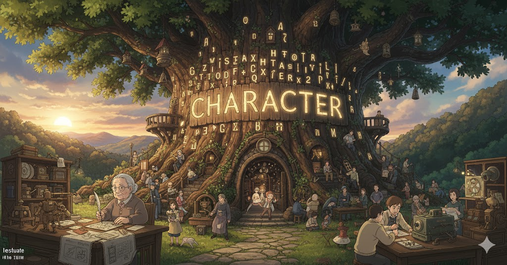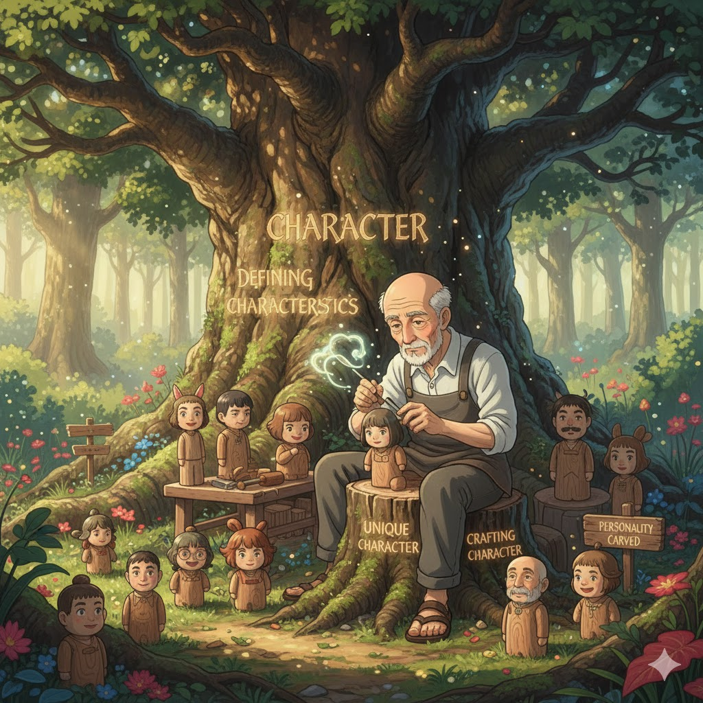 그리스어 kharaktēr ("조각 도구, 각인, 상징")에서 유래 → 라틴어 character ("특징, 표식")를 거쳐 영어로 유입 → 원래 **'새겨진 표식이나 특징'**을 의미했음 → 이 의미가 현대 영어에서 '사람이나 사물이 가진 고유한 특징이나 성질' (성격, 인격) 명사로 발전함. 나아가 '이야기 속에서 특성을 가진 존재' (등장인물, 인물), 그리고 '언어를 표기하는 기호' (문자, 글자)의 의미를 가지게 되었어요. 즉, **'고유한 정체성, 이야기 속의 주체, 또는 표기 수단'**을 나타내는 핵심 단어예요.