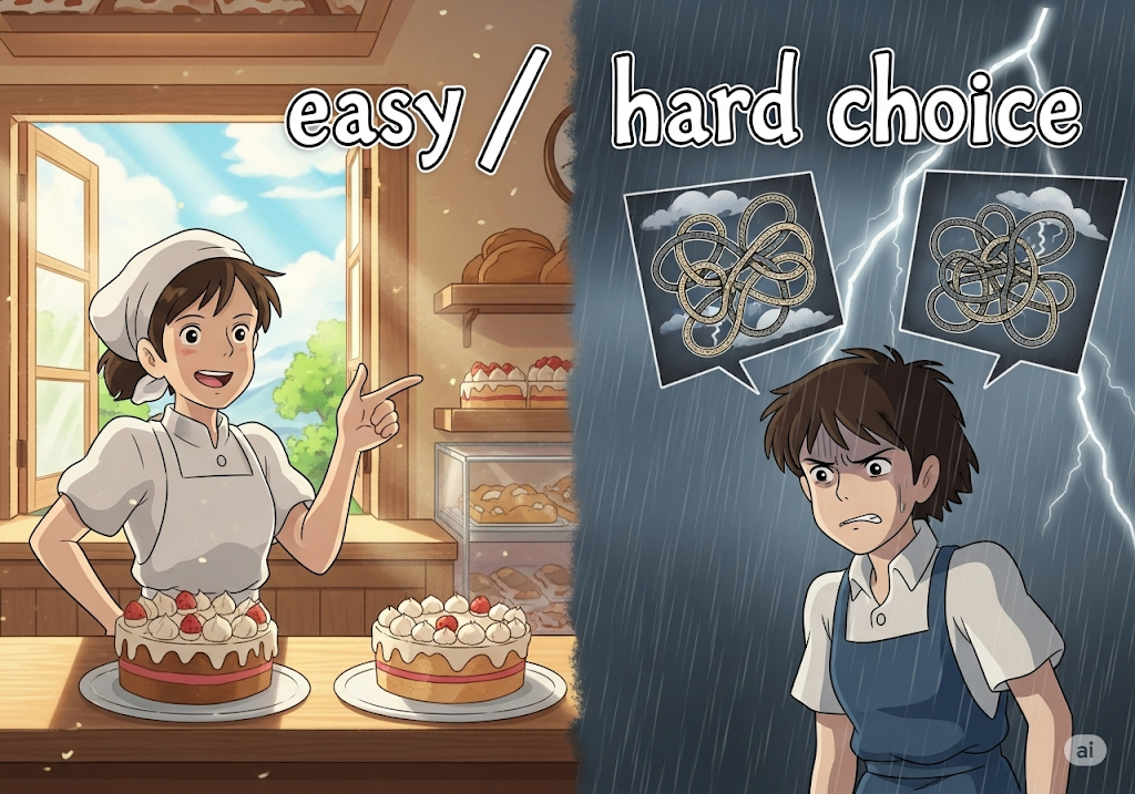 - 뜻: 쉬운/어려운 선택