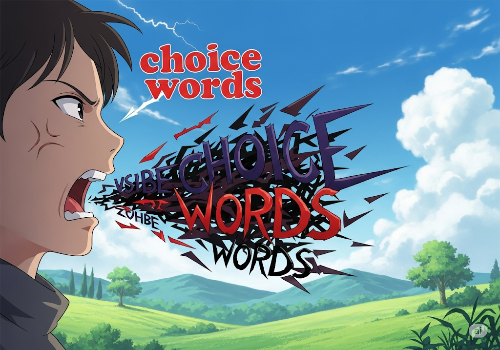 - 예문: He used choice words to express his anger. (그는 분노를 표현하기 위해 신중하게 단어를 골라 사용했다.)