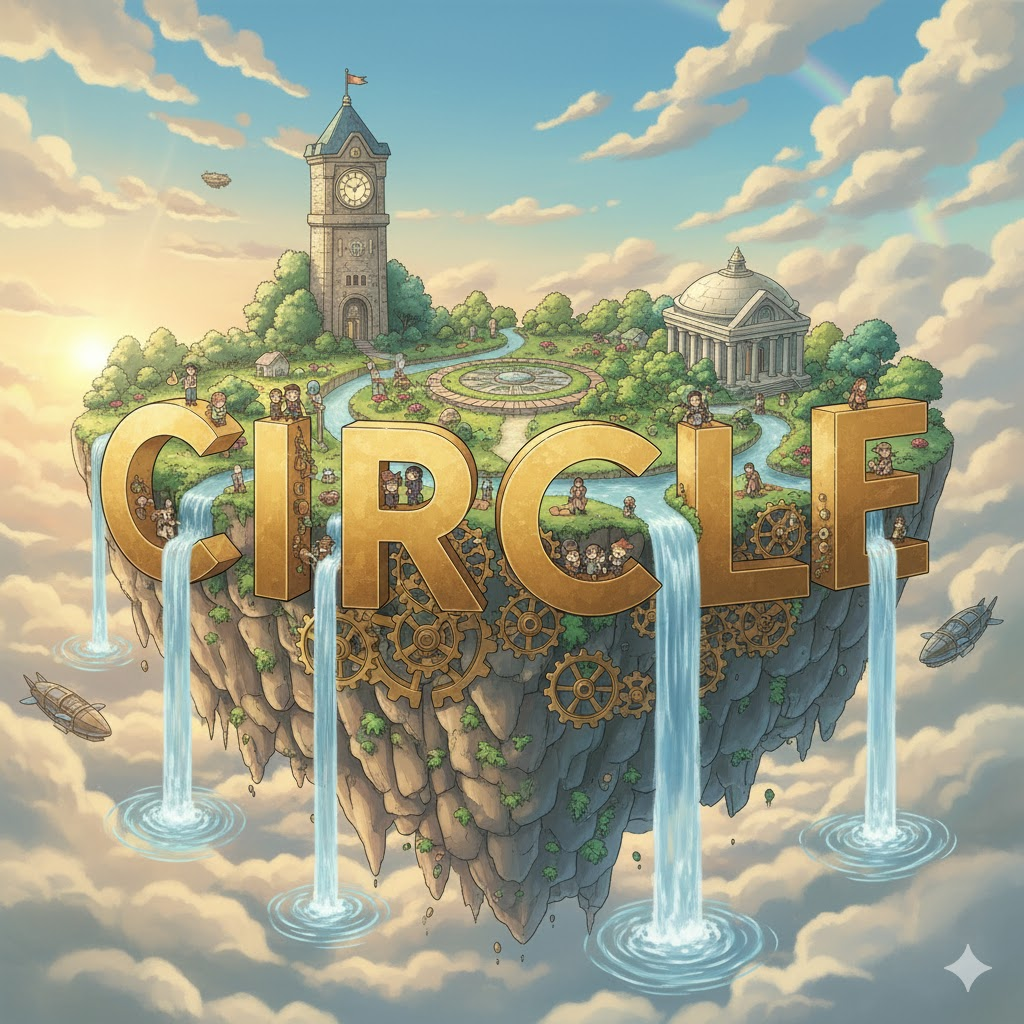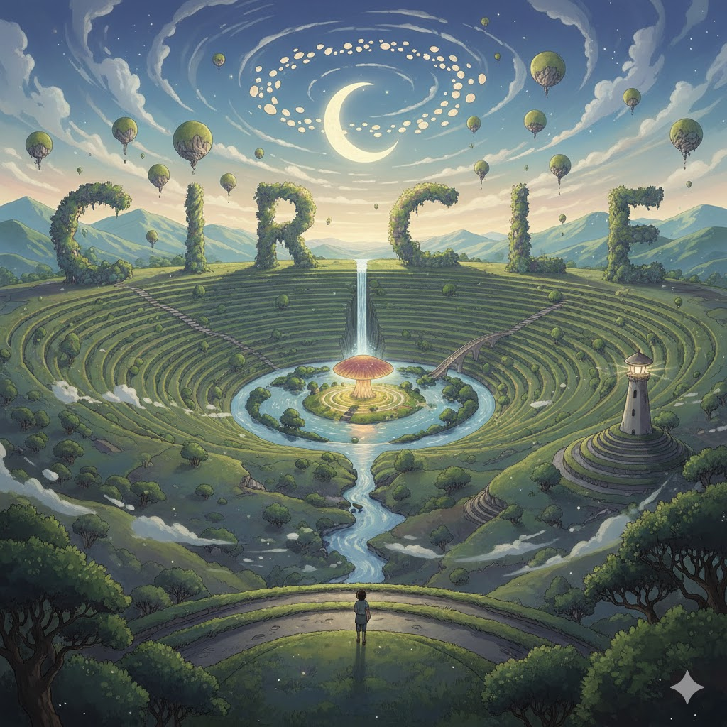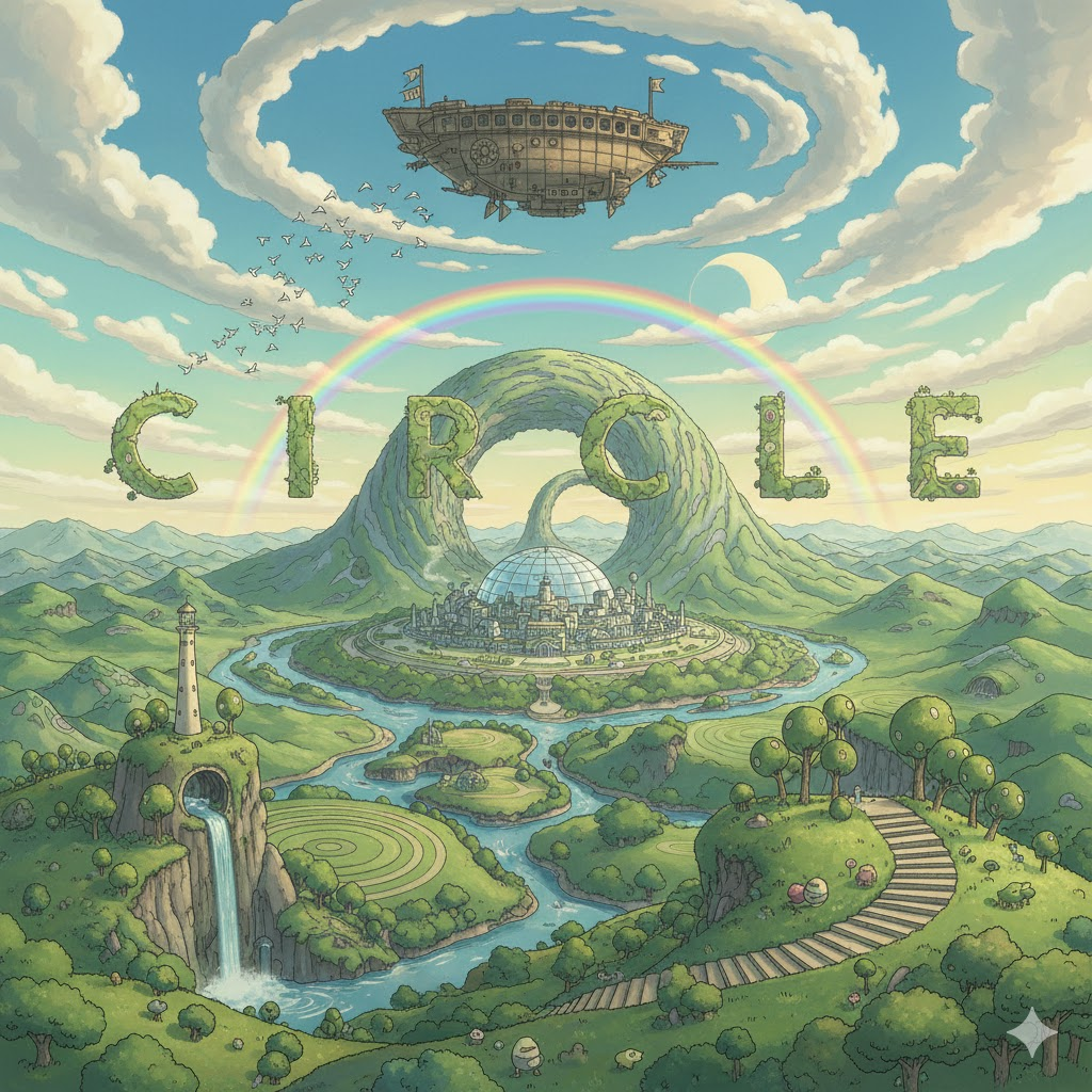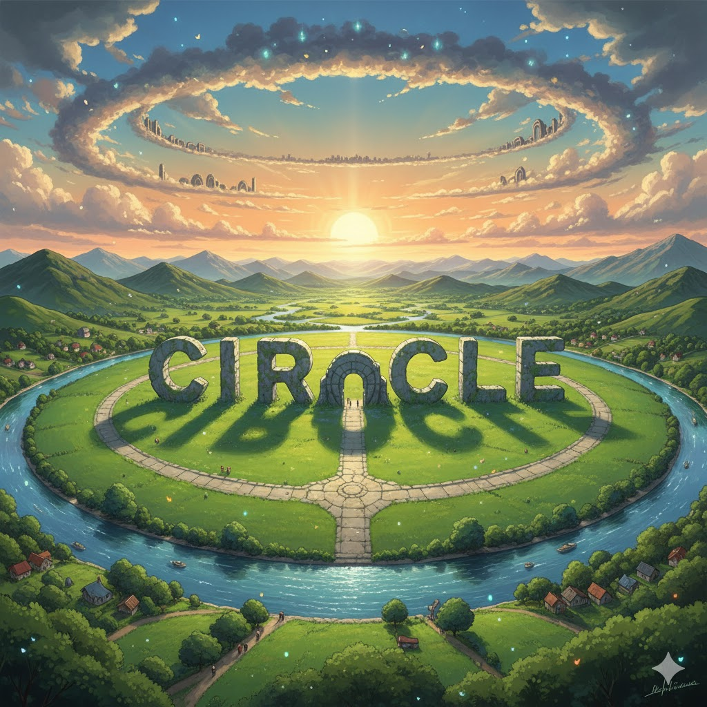 '중심'(center)에서 '같은'(equal) '거리'(distance)에 있는 '모든'(all) '점'(point)으로 '이루어진' '평면'(flat) '도형'(shape)을 의미합니다. 단순히 '도형'을 넘어, '사람들'(people)의 '집단'(group)이나 '사회적'(social) '범위'(range), 또는 '반복적'(repetitive)인 '순환'(cycle)이나 '움직임'(movement)을 비유적으로 나타내는 데 초점이 맞춰집니다.