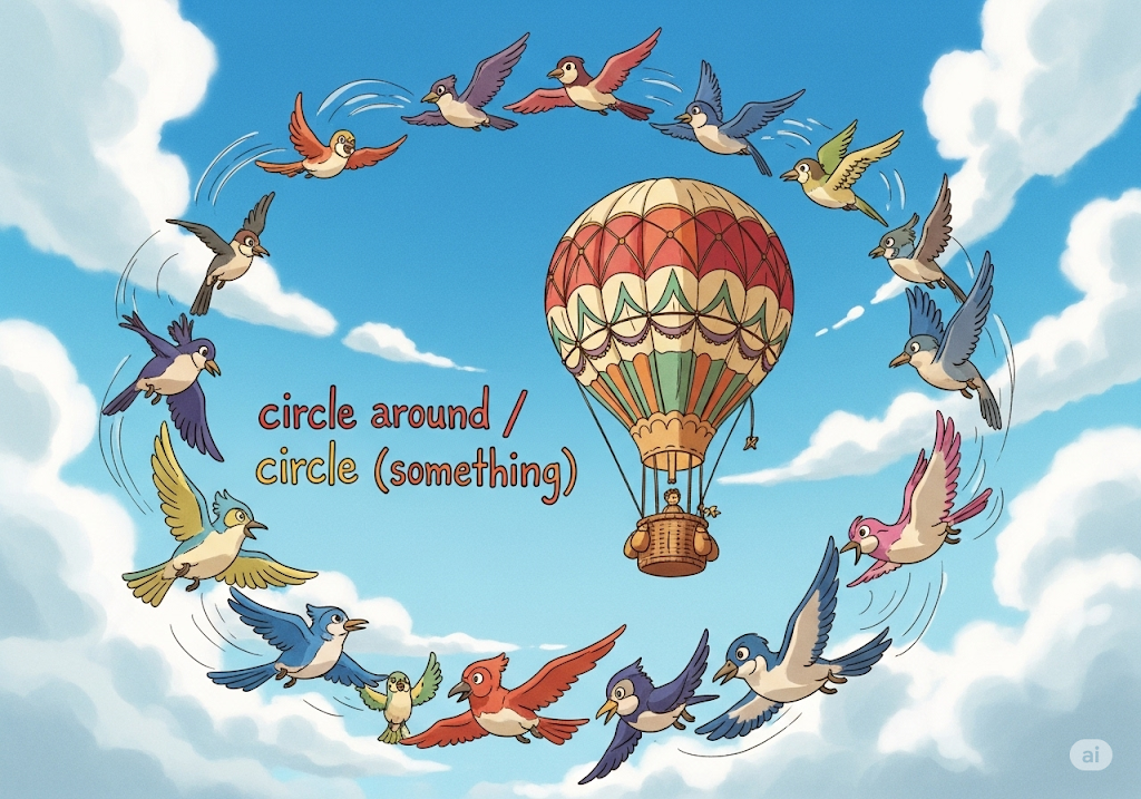 - 예문: The helicopter circled around the building. (헬리콥터가 건물 주변을 선회했다.)