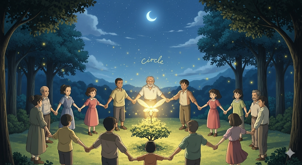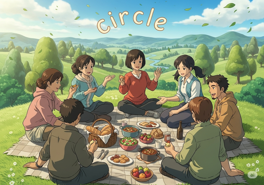 | circle | 원, 모임 | 명사로, 시작과 끝이 없는 둥근 모양. | '친구 모임'을 의미하는 비유. |