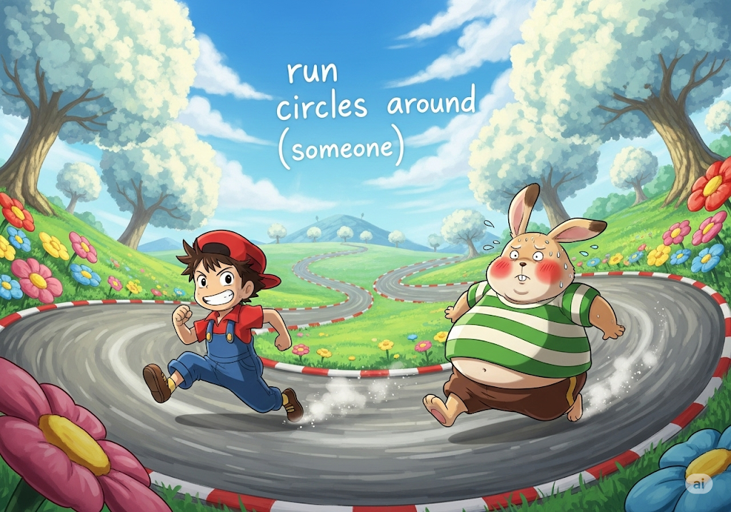 - 예문: She can run circles around her opponents in the debate. (그녀는 토론에서 상대를 훨씬 앞서 나갈 수 있다.)
