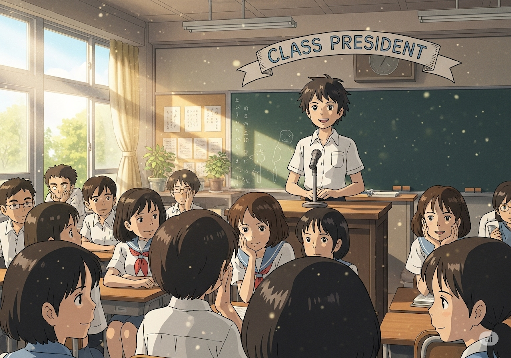 - *'class president'**는 학생들 사이에서 리더십과 책임감을 배우는 중요한 역할을 지칭합니다. 학급의 분위기를 이끌고, 선생님과 학생들 사이의 가교 역할을 하는 학생을 묘사할 때 사용되는 표현입니다.