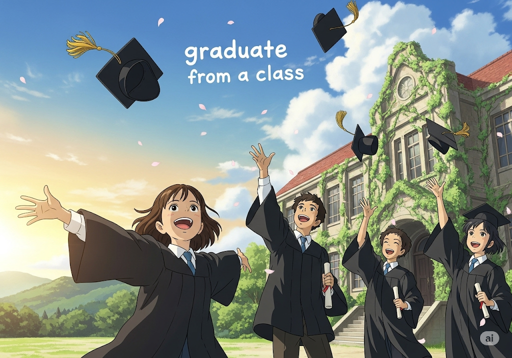 graduate from a class [ˈɡrædʒueɪt frəm ə klæs]