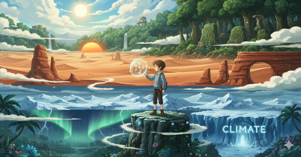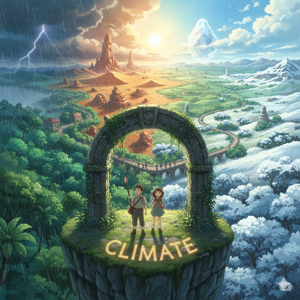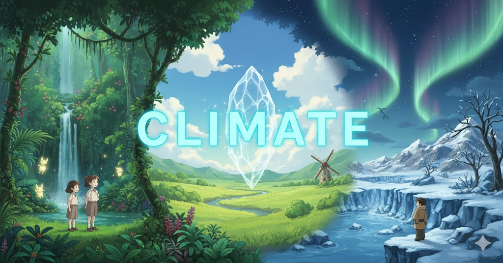 고대 그리스어 klima ("경사, 지역")에서 유래 → 지구의 경사가 지역의 날씨에 영향을 미친다는 고대 지리학적 개념과 관련 → 라틴어 clima를 거쳐 영어로 유입 → 원래 **'특정 위도나 지역의 날씨 조건'**을 의미했음 → 이 의미가 현대 영어에서 '특정 지역의 오랜 기간에 걸친 평균적인 날씨 상태' (기후) 명사로 발전함. 나아가 '어떤 상황이나 조직에 지배적으로 형성된 전반적인 경향이나 분위기' (분위기, 풍조)의 의미를 가지게 되었어요. 즉, **'자연 환경의 장기적인 특징, 또는 사회적/정서적 환경의 전반적인 특성'**을 나타내는 핵심 단어예요.