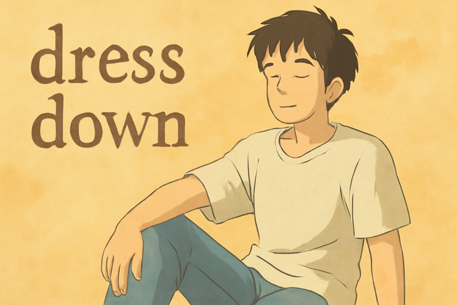 | dress | 옷을 입다 | 동사로, 몸에 옷을 걸치는 행위. | down이라는 부사와 결합하여 '덜 격식 있게' 옷을 입는다는 의미를 형성. |