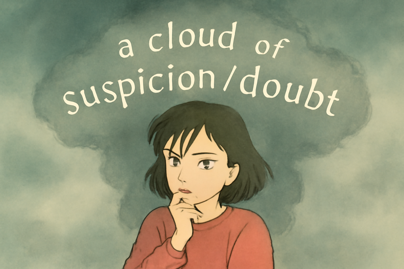 - 예문: There was a cloud of suspicion over the politician after the scandal. (그 정치인은 스캔들 이후 의혹의 대상이 되었다.)