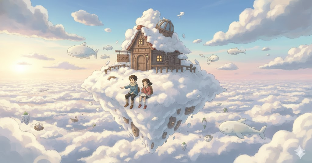 | one’s head | ~의 머리 | 비유적으로 '사고방식'이나 '생각'을 의미. | '사고'의 주체인 '머리'가 '구름'에 있음을 나타냄. |