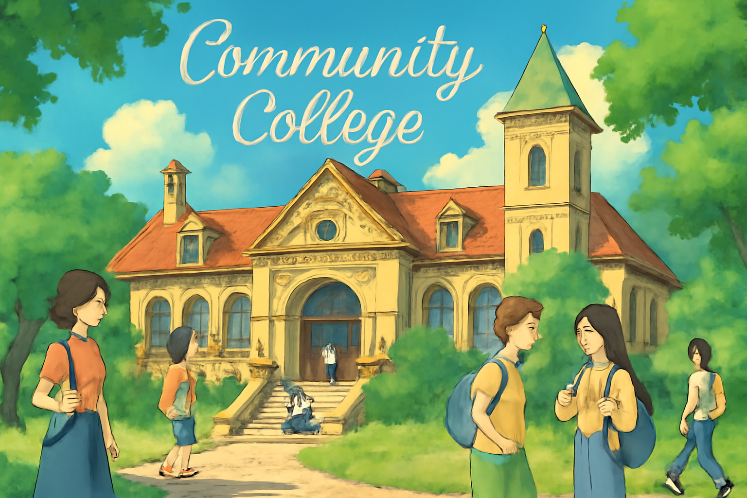 2년제 대학, 커뮤니티 칼리지. 주로 2년 동안 교육을 제공하고 준학사 학위(associate degree)나 자격증을 수여하는 지역 공립 고등 교육 기관입니다. 4년제 대학으로 편입하거나, 바로 취업할 수 있는 직업 교육을 제공합니다.