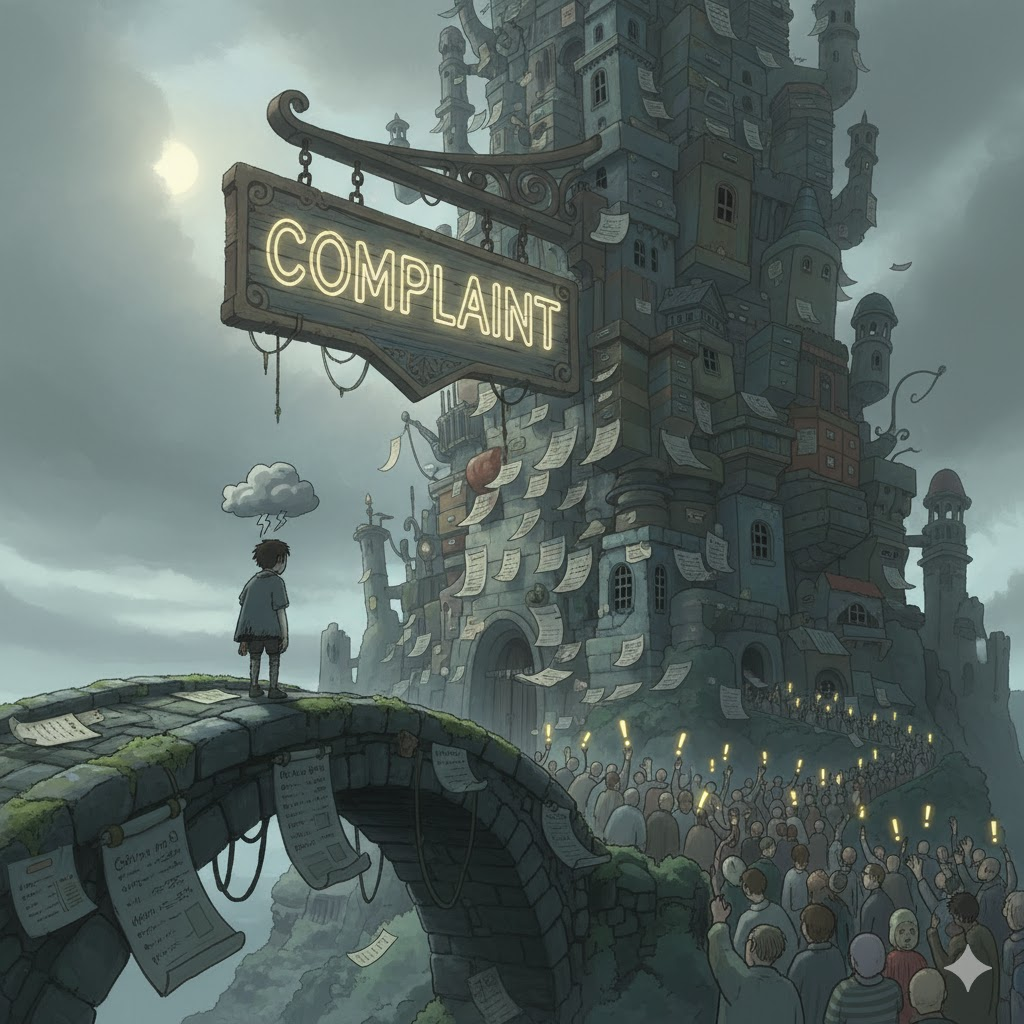 어떤 것에 대한 불만족이나 불쾌감을 표현하는 행위 또는 그 내용 자체를 의미합니다. 종종 문제를 해결하기 위해 공식적으로 제기하는 '고소'나 '항의'의 의미로도 사용됩니다. 핵심은 **'부정적 감정의 표출'**과 **'문제 제기'**입니다.