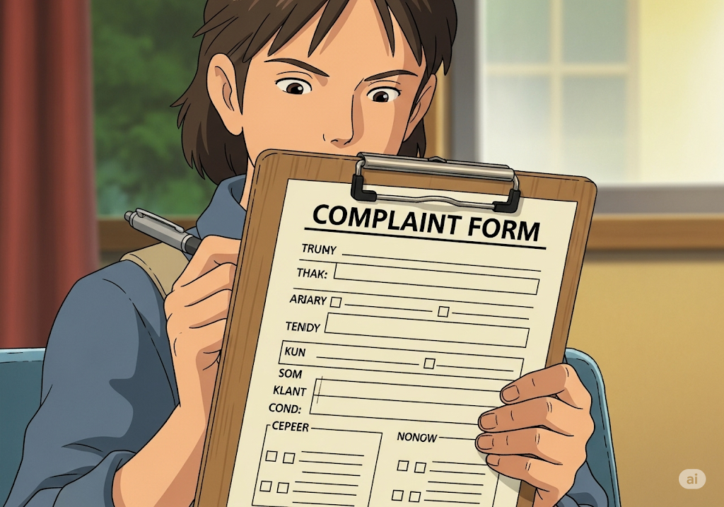 뉘앙스: 불만 사항을 공식적으로 작성하여 제출하는 데 사용하는 서식이나 서류를 의미합니다. 체계적이고 구체적인 정보(이름, 연락처, 문제 내용 등)를 기입하여 불만을 접수하는 데 사용됩니다.