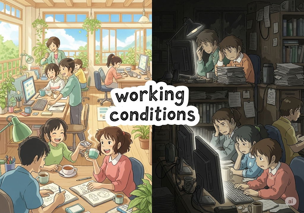 - 뜻: 근무 환경(조건), 노동 조건