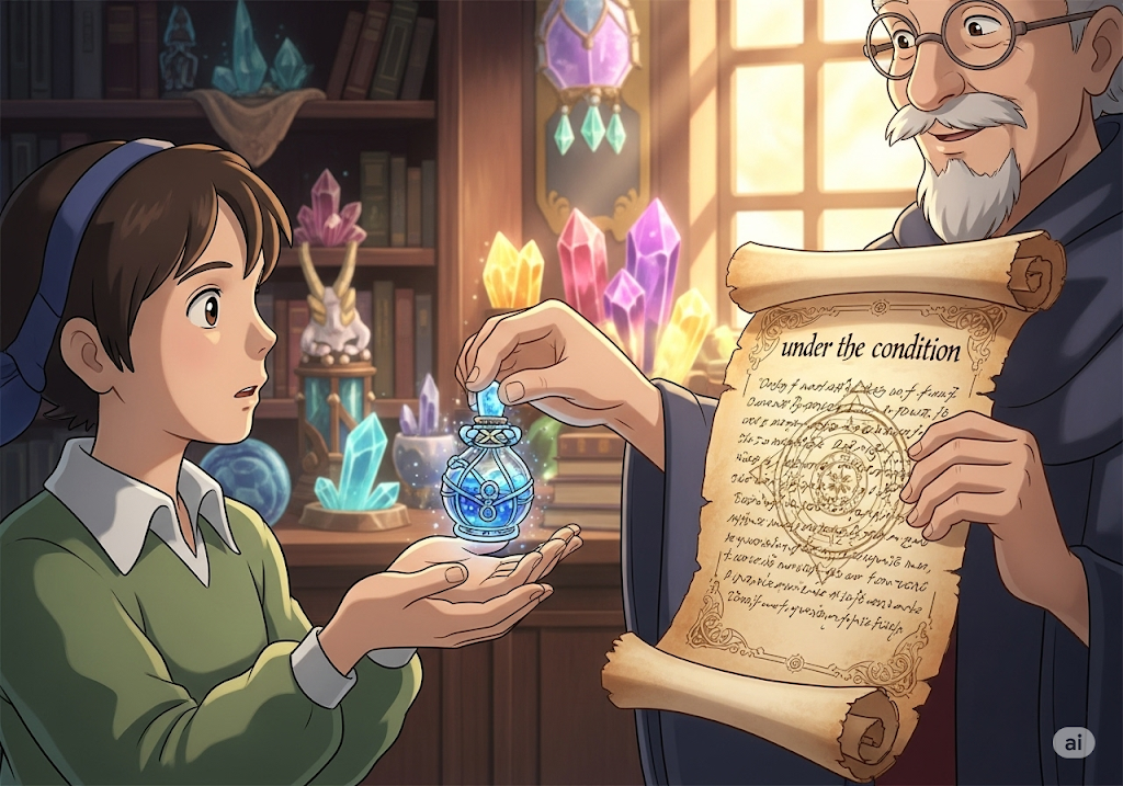 - 예문: You can borrow my book on condition that you return it tomorrow.
