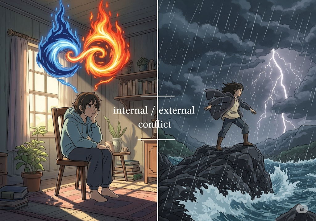 - *'internal conflict'**는 문학이나 심리학에서 캐릭터의 심리적 깊이를 나타내는 데 자주 사용됩니다. 반면 **'external conflict'**는 이야기의 서사를 이끌어가는 주요 요소로, 주인공과 그를 둘러싼 외부 세계의 대립을 나타냅니다. 이 두 가지 갈등은 종종 서로 얽혀 스토리를 더욱 풍부하게 만듭니다.
