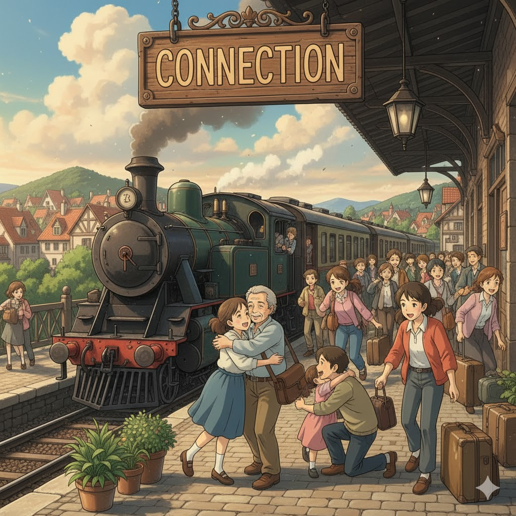 라틴어 connectere ("함께 묶다")에서 유래 → com- ("함께") + nectere ("묶다, 연결하다")의 합성어 → 중세 프랑스어 conneccion을 거쳐 영어로 유입 → 원래 **'물리적으로 함께 묶는 행위'**를 의미했음 → 이 의미가 현대 영어에서 '두 개 이상의 것이 이어져 있는 상태' (연결, 접속) 명사로 발전함. 나아가 '사람이나 사상 등이 서로 영향을 주고받는 관계' (관계, 연관성), '개인적인 네트워크나 연줄' (인맥, 연줄), 그리고 '여행 중 교통수단 간의 이어짐' (환승, 연결편)의 의미를 가지게 되었어요. 즉, **'물리적/논리적 이어짐, 상호 관련성, 사회적 네트워크, 그리고 교통수단의 연속성'**을 나타내는 핵심 단어예요.
