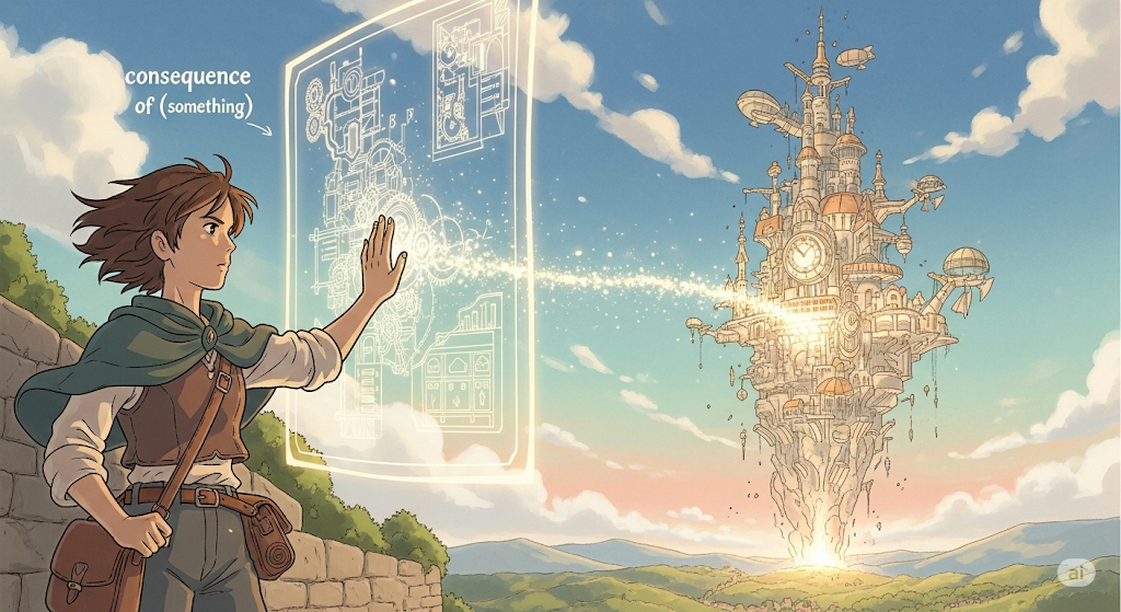 뉘앙스: "무엇인가의 결과"라는 의미로, 원인과 결과의 관계를 가장 보편적으로 나타내는 표현입니다. 이는 어떤 행동이나 사건이 직접적으로 어떤 결과를 만들어낸다는 것을 강조합니다. 마치 설계도를 보고 건물을 짓는 것처럼, 어떤 계획이나 행동이 구체적인 결과를 가져오는 느낌을 담고 있습니다.