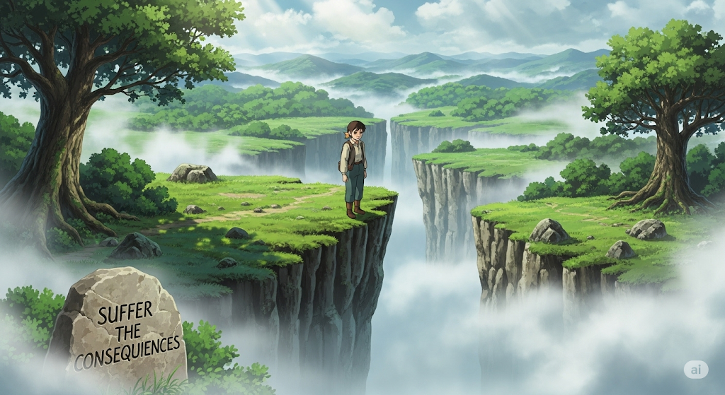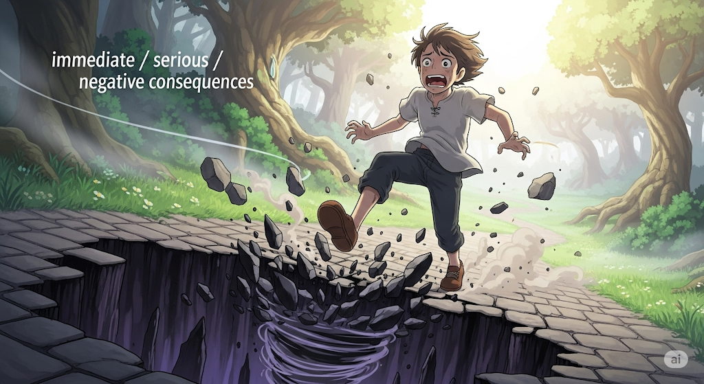 뉘앙스: "즉각적이고, 심각하며, 부정적인 결과"를 의미합니다. 어떤 행동을 하자마자 예상치 못한 나쁜 결과가 바로 닥치는 상황을 강조합니다. 한 번의 잘못된 선택이 되돌릴 수 없는 심각한 영향을 가져온다는 느낌을 줍니다.