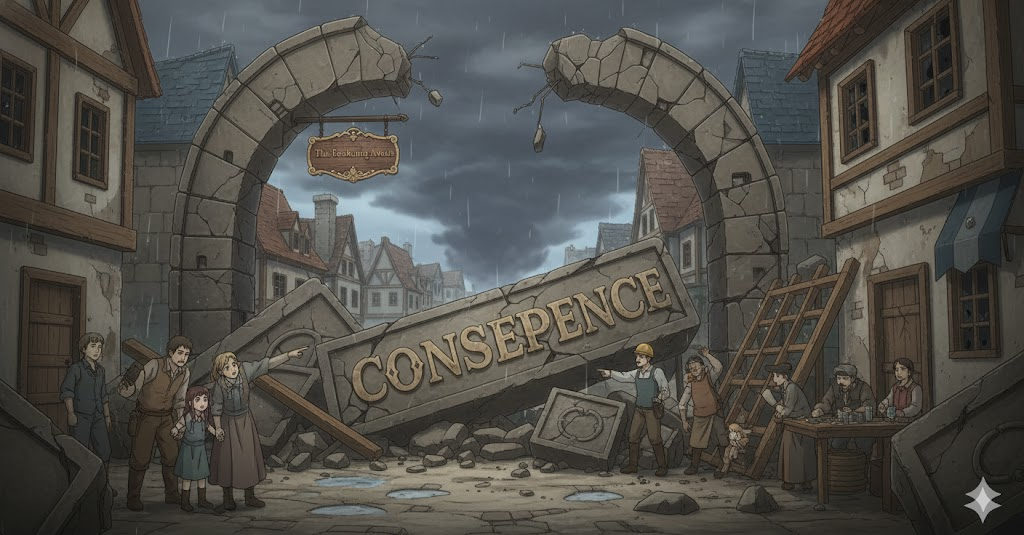 어떤 행위(action), 사건(event), 또는 원인(cause)에 뒤따라 발생하는 최종적인 결과나 영향(effect)을 의미합니다. 단순히 '결과(result)'를 넘어, 특히 **'필연적'**이거나 '부정적'인 결말에 초점이 맞춰져 있습니다. '중요성'(importance)이나 '파급 **효과'**를 뜻하는 의미도 가집니다.