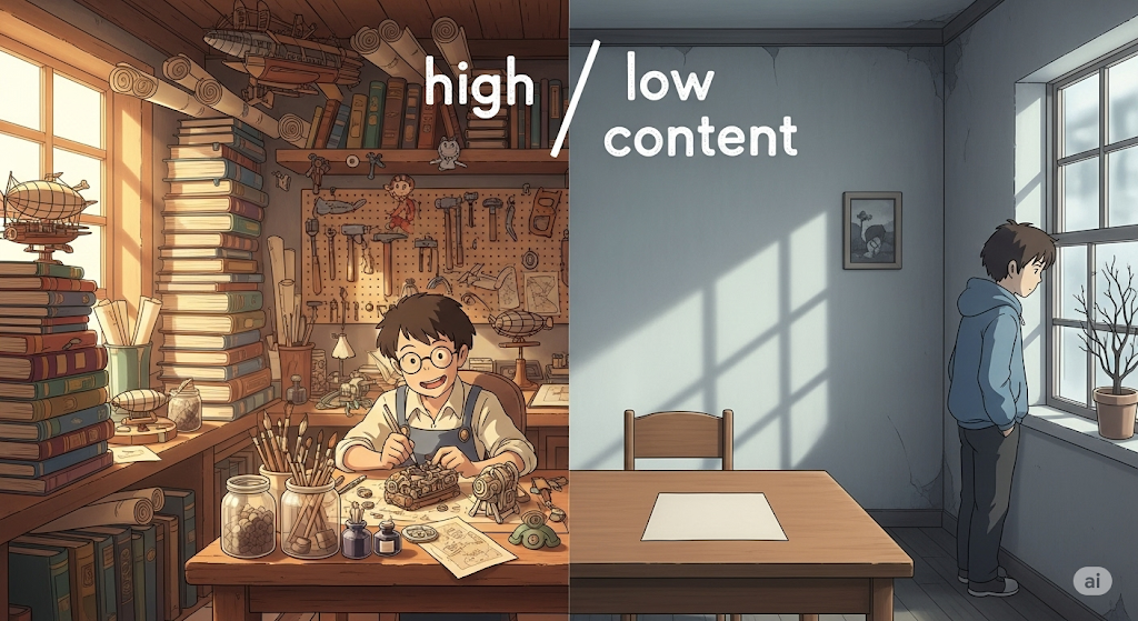 high / low content [haɪ / loʊ ˈkɑːntent]