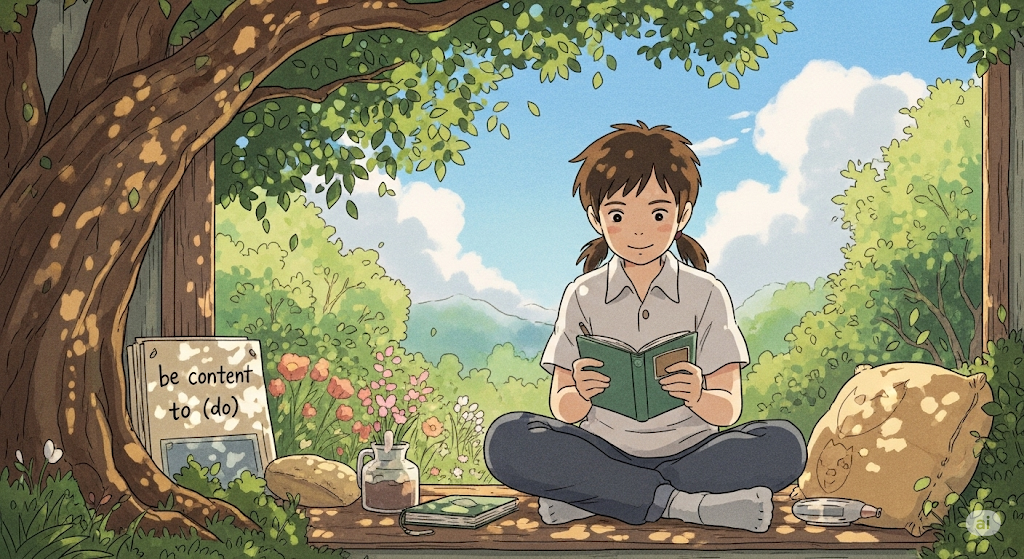 - She is content with her simple way of life in the rural district. (그녀는 농촌 지역에서의 소박한 생활 방식에 만족한다.)