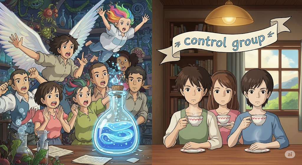 예문: The placebo group received a sugar pill instead of the real medicine.