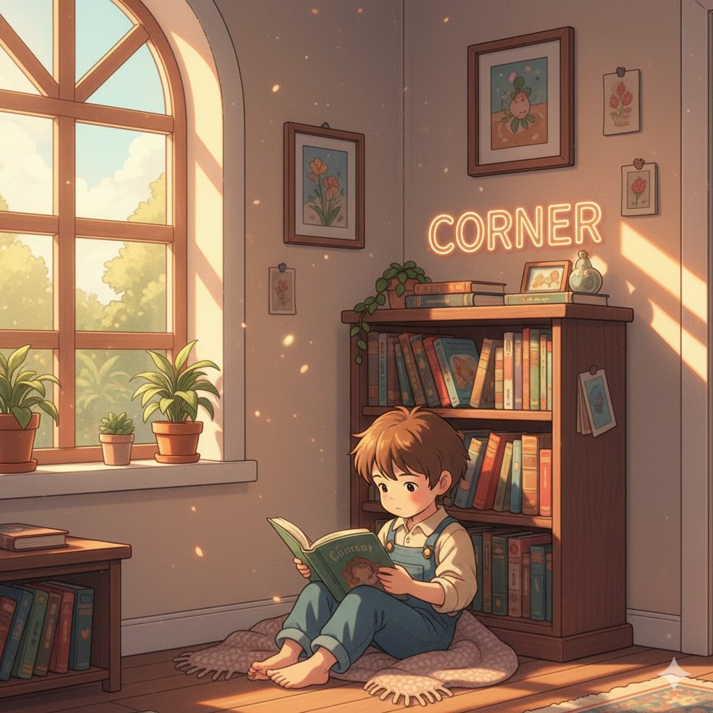 corner [ˈkɔːrnər] 공간의 끝, 숨겨진 장소의 느낌도 있음