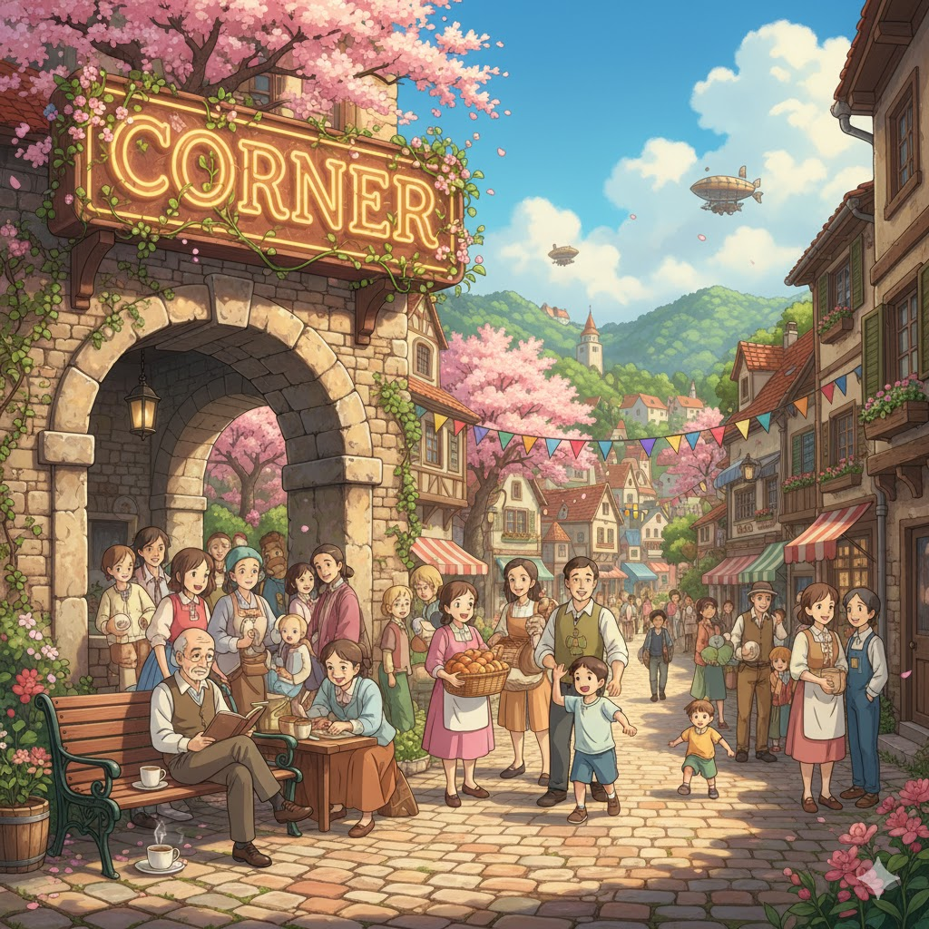 - (명사) 골목, 길모퉁이: 길이나 블록이 꺾이는 지점.
