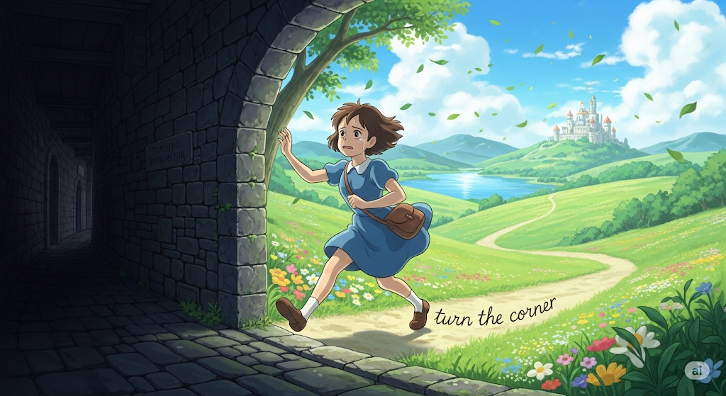 라틴어 cornu ("뿔")에서 유래 → 구 프랑스어 corniere ("모퉁이")를 거쳐 영어로 유입 → 원래 **'뿔처럼 뾰족하게 튀어나온 부분'**을 의미했음 → 이 의미가 현대 영어에서 '두 벽이나 길 등이 만나는 꺾이는 지점' (모퉁이, 구석) 명사로 발전함. 나아가 '방이나 공간의 가장 안쪽 부분' (구석), '탈출하기 어려운 곤경' (궁지, 곤경)의 의미를 가지게 되었어요. 동사로는 '누군가를 막다른 곳으로 몰아넣는' (궁지에 몰아넣다) 의미와, '특정 시장을 지배하여 독점하는' (독점하다) 의미를 가지게 되었어요. 즉, **'꺾이는 지점, 안쪽 공간, 어려운 상황, 그리고 통제하는 행위'**를 나타내는 핵심 단어예요.