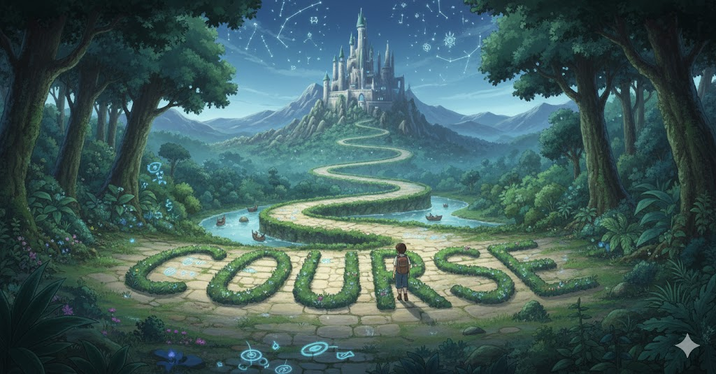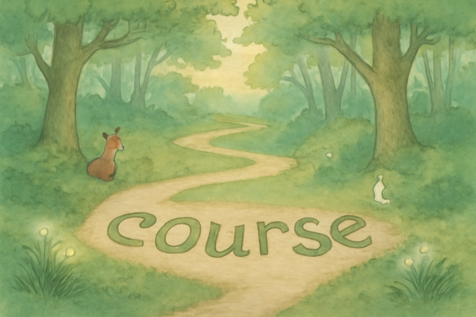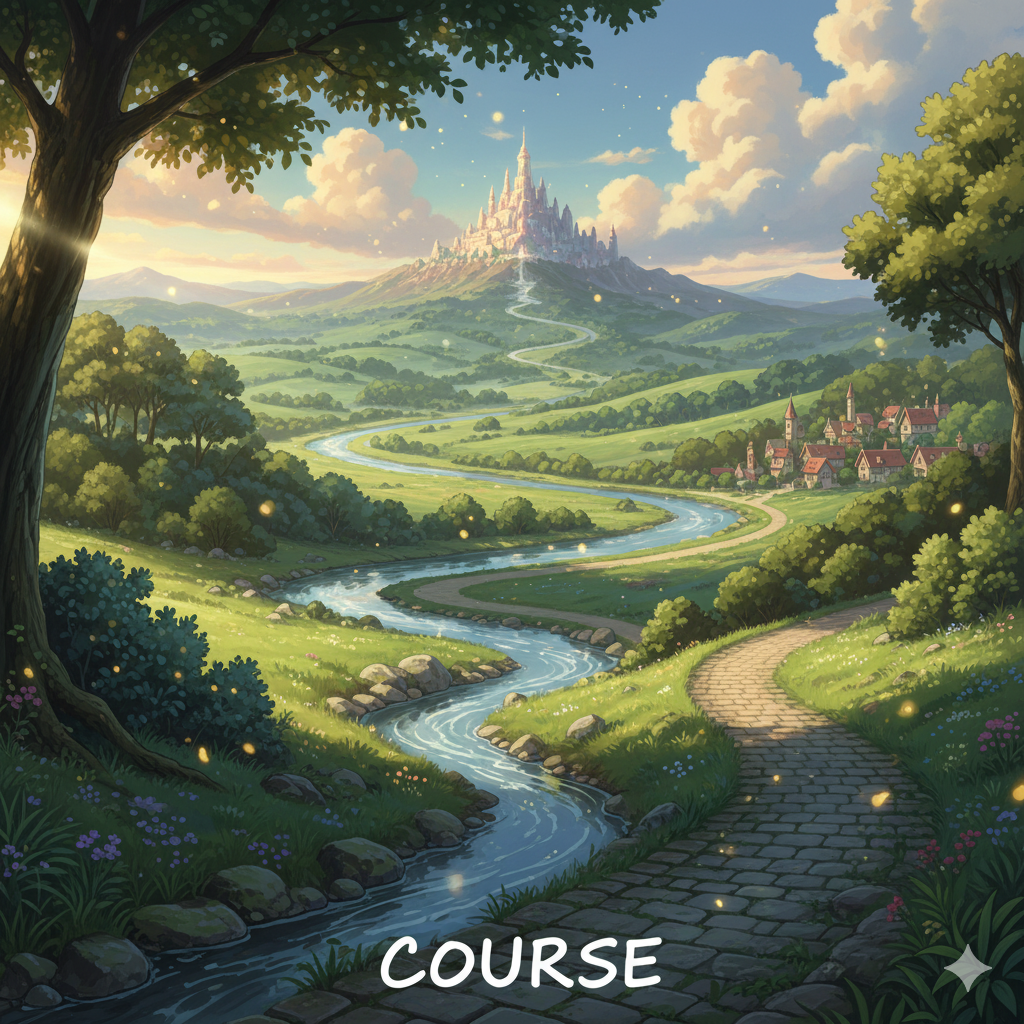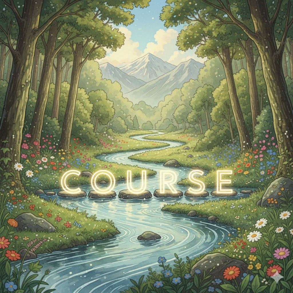 교육(education) 기관에서 '특정 기간'(time) 동안 '배우는' '일련의 **수업'**을 의미합니다. 물리적인 길이나 방향(direction), 액체(물)의 흐름, 또는 일련의 단계(steps)를 뜻하는 비유적인 의미로도 사용됩니다. 핵심은 정해진 경로나 일정입니다.