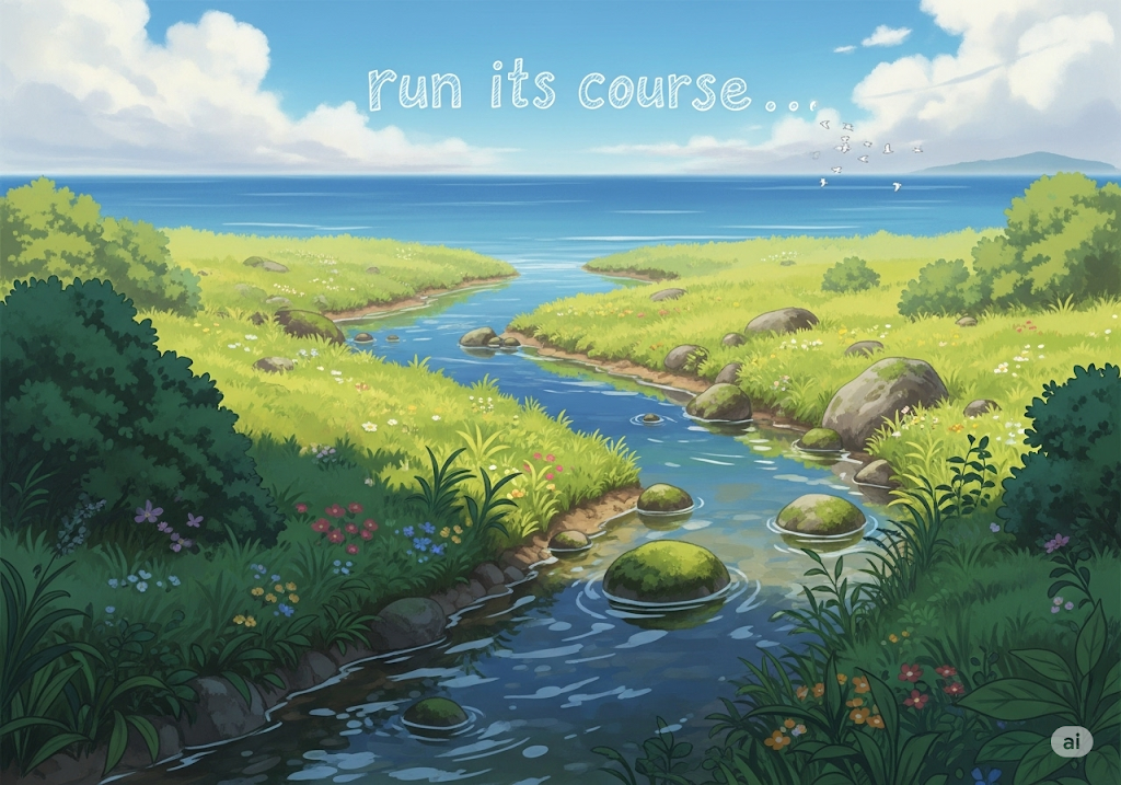 - *'run its course'**는 개입이 의미 없거나 불필요한 상황을 설명할 때 사용됩니다. 이는 특히 질병이나 관계, 유행 등 자연스럽게 시작하고 끝나는 현상을 묘사하는 데 적합한 표현입니다.
