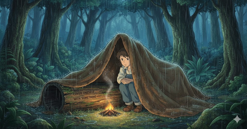'자신의' 몸(body)을 '물리적으로' '덮개'(cover) 등으로 '가리는' 행위를 의미합니다. 비유적으로는 '실수'(error)나 '비난'(criticism)의 '책임'(responsibility)에서 '벗어나기' 위해 '사전'에 '문서'(document) 등으로 '방어'를 마련하는 행위를 뜻하기도 합니다.