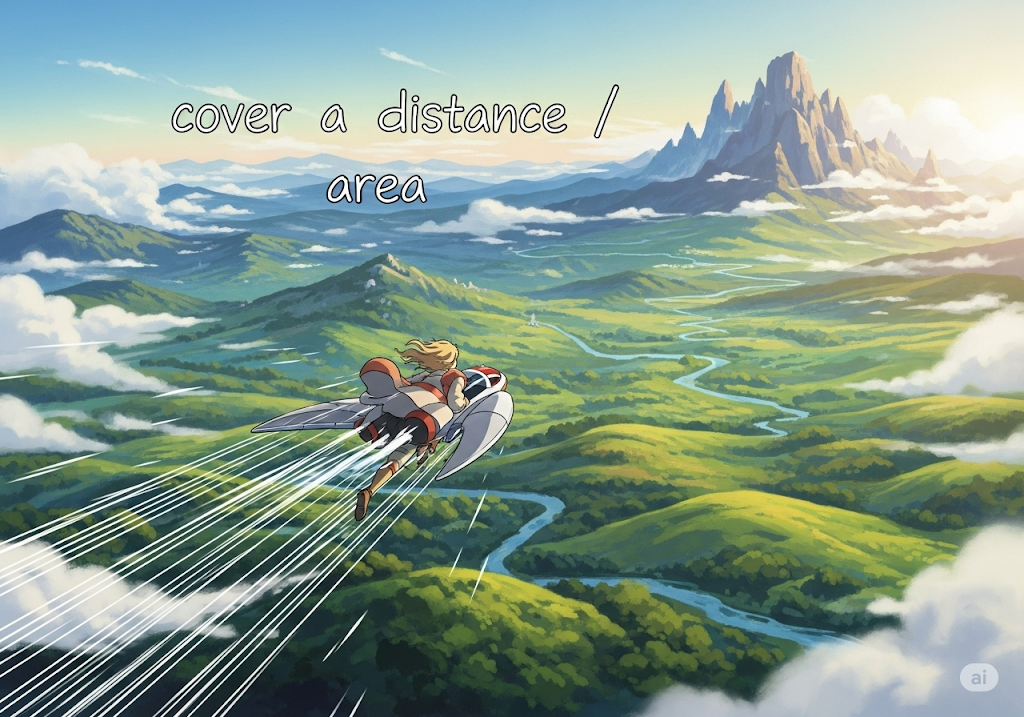- cover a distance/area
