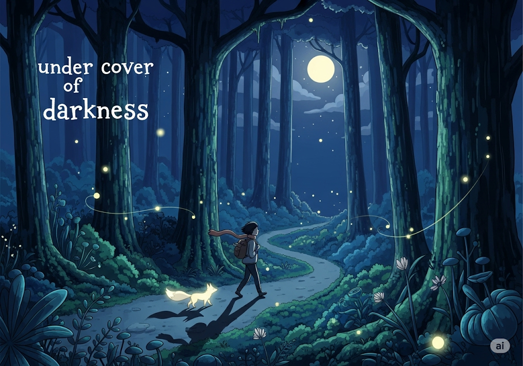 | cover | 엄호, 보호 | 명사로, 숨겨주고 보호해주는 역할. | darkness/night라는 '어둠'의 '보호막'임을 구체화. |