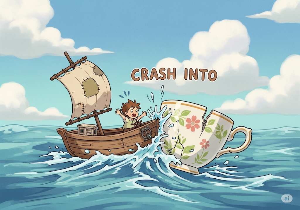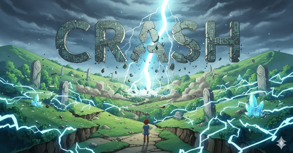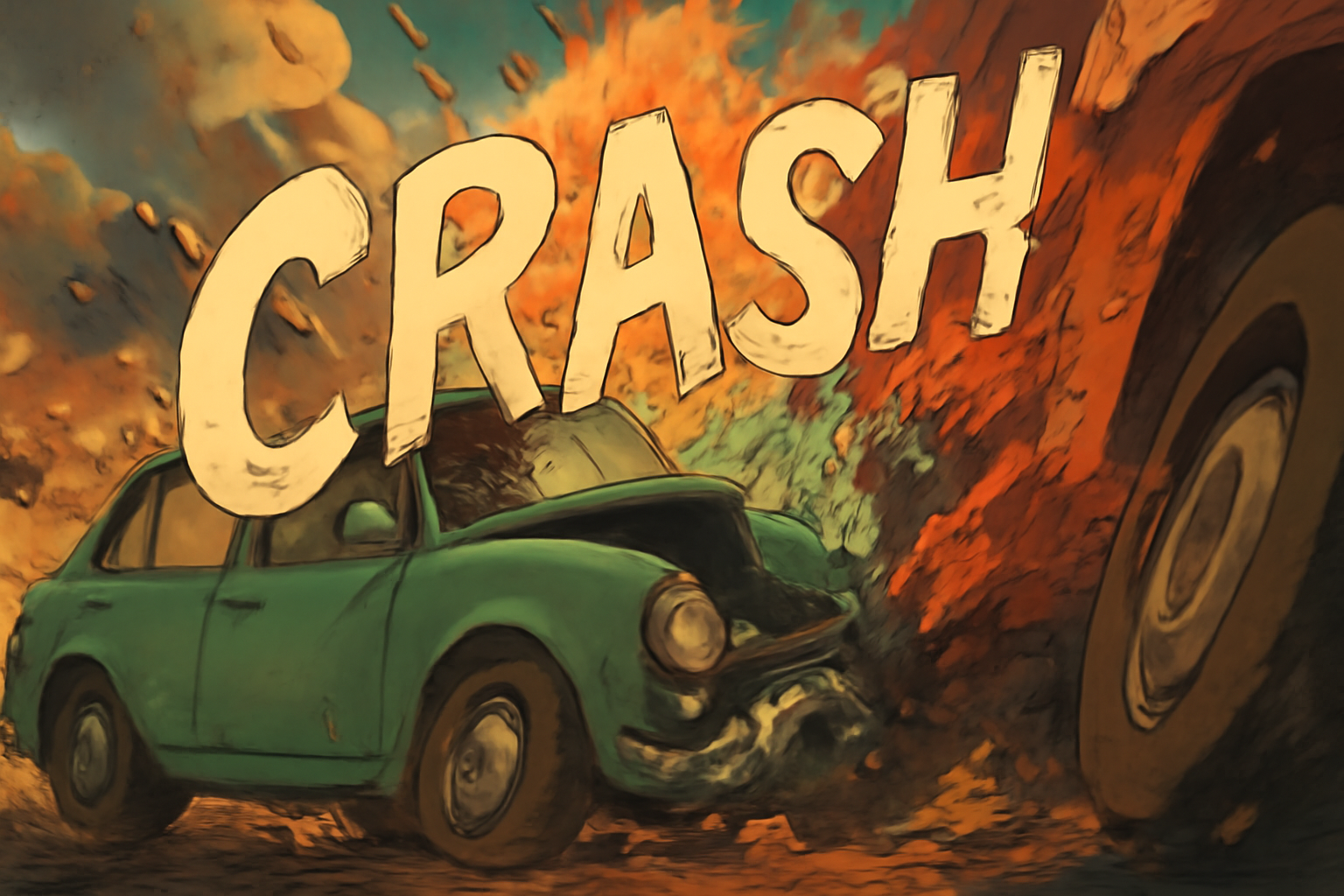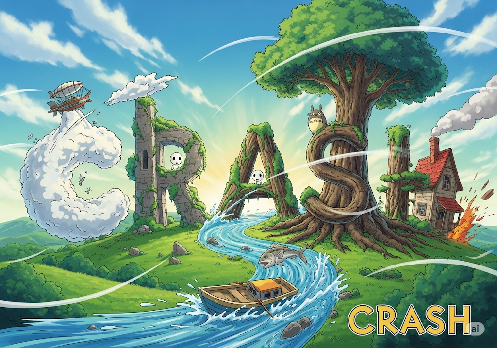 갑작스럽고 격렬하게 어떤 물체와 부딪히는 행위를 의미합니다. '사고로 인한 충돌(collision)'이나 '추락'을 뜻하며, 시스템이나 시장이 갑자기 **'고장 나거나 폭락하는 것'**을 비유적으로 나타낼 때도 사용됩니다. 핵심은 **'파괴적이거나 갑작스러운 충격'**입니다.